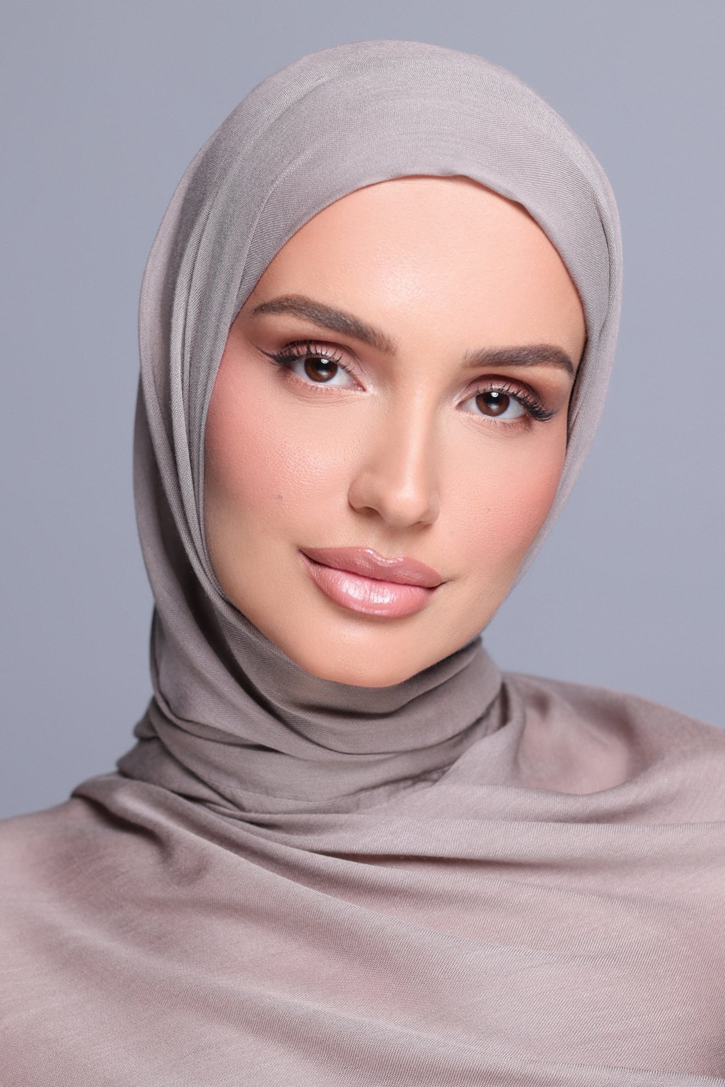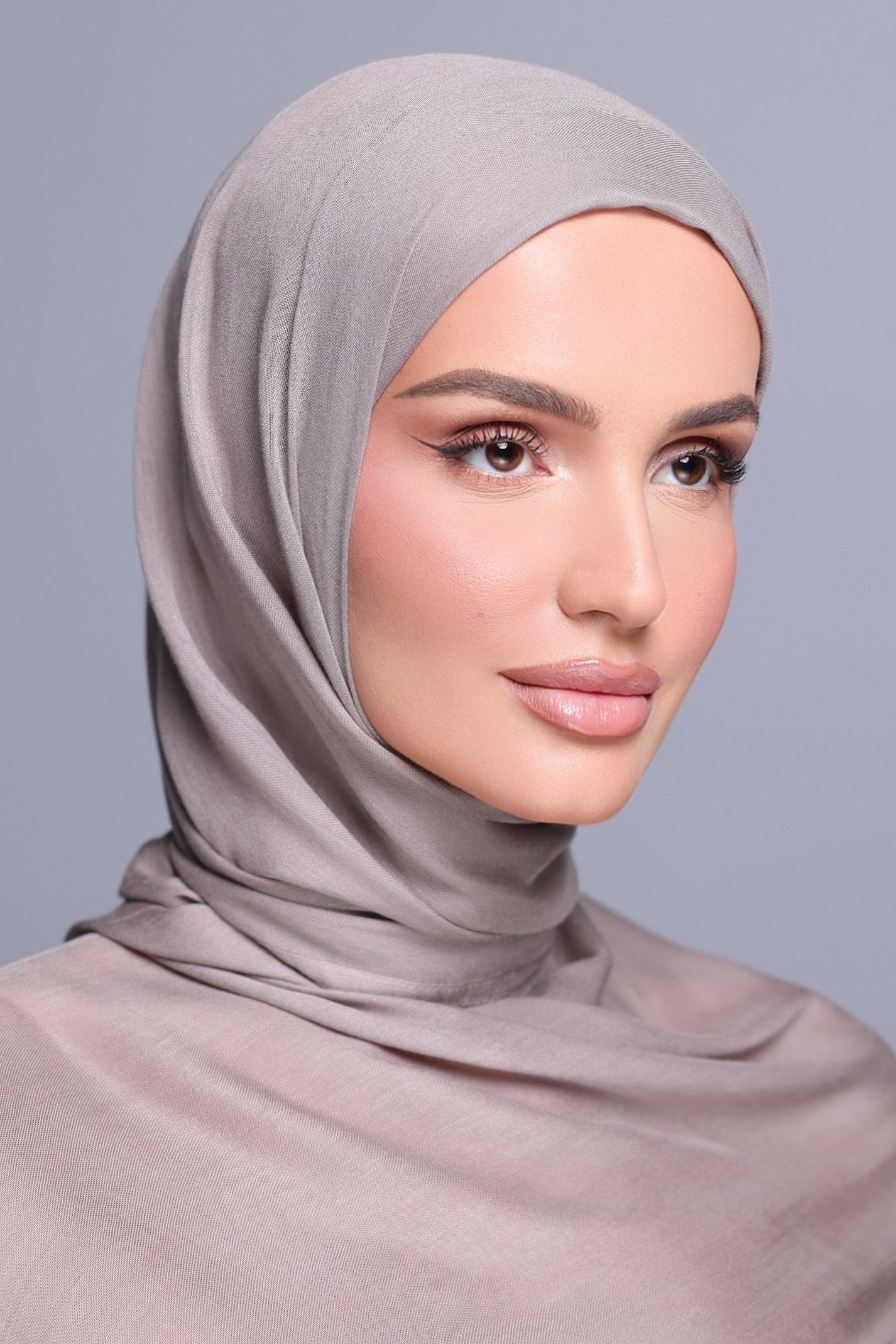Experience the ultimate blend of luxury and functionality with our Taupe Modal Hijab Set. This set includes a premium black modal hijab and a non-slip jersey undercap.